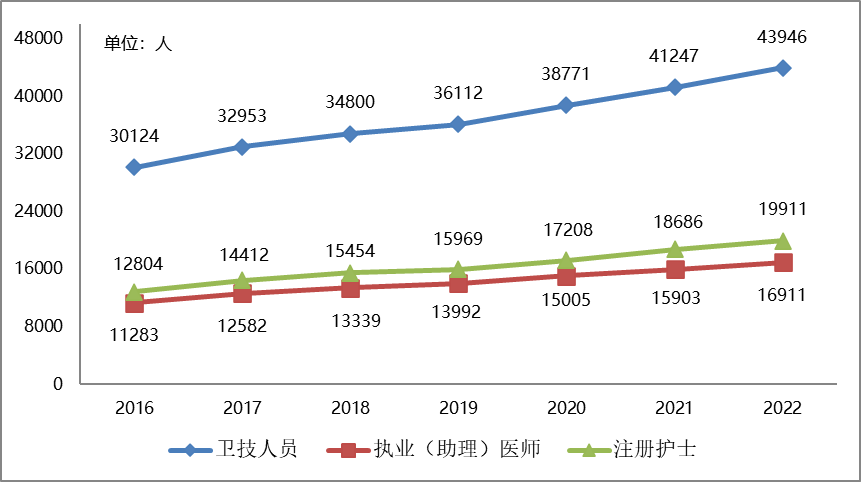 2016-2022年全市醫療衛生機構衛生技術人員數