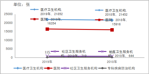 圖1 2018-2019年全市醫(yī)療衛(wèi)生機構(gòu)床位