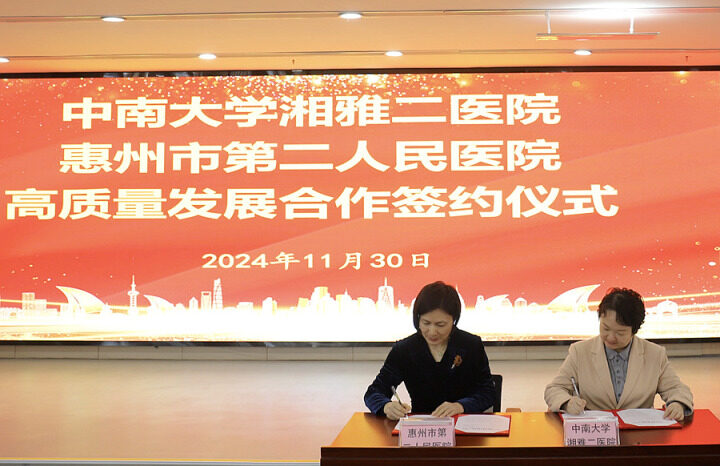 11月30日上午,惠州市第二人民醫院與中南大學湘雅二醫院高質量發展合作簽約暨揭牌儀式在市第二人民醫院紅花湖院區門診樓4樓會議室舉行。 中南大學湘雅二醫院副院長張燕,惠州市衛生健康局黨組書記、局長徐蓉,市第二人民醫院黨委書記張富強,市第二人民醫院院長張曉慧以及兩家醫院相關科室(部門)負責人出席了現場的儀式。