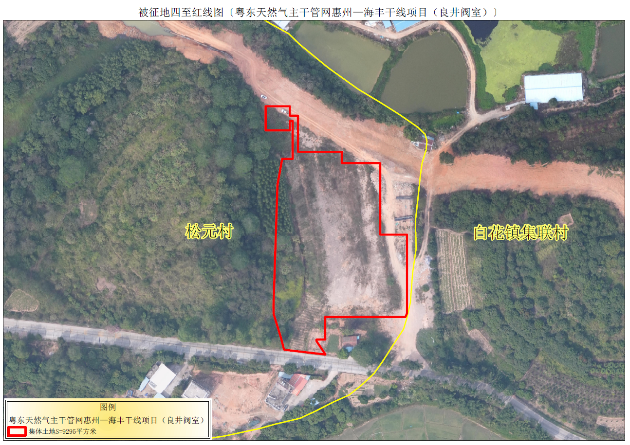 惠陽府告〔2023〕65號 為了公共利益需要,根據(jù)《中華人民共和國土地管理法》《中華人民共和國土地管理法實施條例》《廣東省土地管理條例》《惠州市集體土地征收與補償辦法》(惠府〔2021〕27號)等法律法規(guī),經(jīng)惠州市惠陽區(qū)人民政府研究決定,擬征收惠州市惠陽區(qū)良井鎮(zhèn)松元村地段合計0.9295公頃集體土地,作為粵東天然氣主干管網(wǎng)惠州-海豐干線項目(良井閥室)建設(shè)用地,現(xiàn)依法發(fā)布土地征收預(yù)公告: 一、擬征收土地的位置、范圍和面積 擬征收地塊位于惠州市惠陽區(qū)良井鎮(zhèn)松元村地段,屬惠州市惠陽區(qū)良井鎮(zhèn)松元村長途股份經(jīng)濟(jì)合作社所有的集體土地,面積合計0.9295公頃。四至范圍詳見附件《被征地四至紅線圖〔粵東天然氣主干管網(wǎng)惠州-海豐干線項目(良井閥室)〕》。 二、征收土地的征收目的 本次擬征收土地用于粵東天然氣主干管網(wǎng)惠州-海豐干線項目(良井閥室)建設(shè)。 三、開展土地現(xiàn)狀調(diào)查安排 自本公告發(fā)布之日起,由惠州市惠陽區(qū)自然資源局會同惠州市惠陽區(qū)良井鎮(zhèn)人民政府組織有關(guān)單位進(jìn)行土地現(xiàn)狀調(diào)查,內(nèi)容包括擬征收土地的權(quán)屬、地類、面積,以及農(nóng)村村民住宅、其他地上附著物和青苗等的權(quán)屬、種類、面積、數(shù)量等信息。調(diào)查結(jié)果將與被征地的農(nóng)村集體經(jīng)濟(jì)組織、農(nóng)民、青苗和地上附著物產(chǎn)權(quán)人共同確認(rèn),請各相關(guān)單位和個人相互告知,并予以配合。 四、其他事項 本預(yù)公告的公告期自2023年9月1日至2023年9月15日止。 自本預(yù)公告發(fā)布之日起,在擬征地范圍內(nèi),惠州市公安局惠陽區(qū)分局、惠州市惠陽區(qū)住房和城鄉(xiāng)建設(shè)局、惠州市惠陽區(qū)市場監(jiān)督管理局、惠州市惠陽區(qū)自然資源局等有關(guān)部門暫停辦理下列事項,待征地補償工作完成后恢復(fù)辦理: (一)審批新增建設(shè)項目用地。 (二)審批新建、改建、擴建房屋。 (三)辦理入戶和分戶,但因結(jié)婚、出生、回國、退伍轉(zhuǎn)業(yè)、畢業(yè)生戶籍回遷、刑滿釋放等原因應(yīng)當(dāng)入戶的除外。 (四)以被征收人土地上房屋為注冊地址辦理經(jīng)營注冊登記、變更手續(xù)。 (五)改變土地、房屋用途。 (六)房屋、土地的轉(zhuǎn)讓、租賃和抵押。 自本預(yù)公告發(fā)布之日起,任何單位個人不得在擬征地范圍內(nèi)搶栽搶建;違反規(guī)定搶栽搶建的,對搶栽搶建部分不予補償。 聯(lián)系人:周柳軍;聯(lián)系電話:0752-3656045。 附件:被征地四至紅線圖〔粵東天然氣主干管網(wǎng)惠州-海豐干線項目(良井閥室)〕