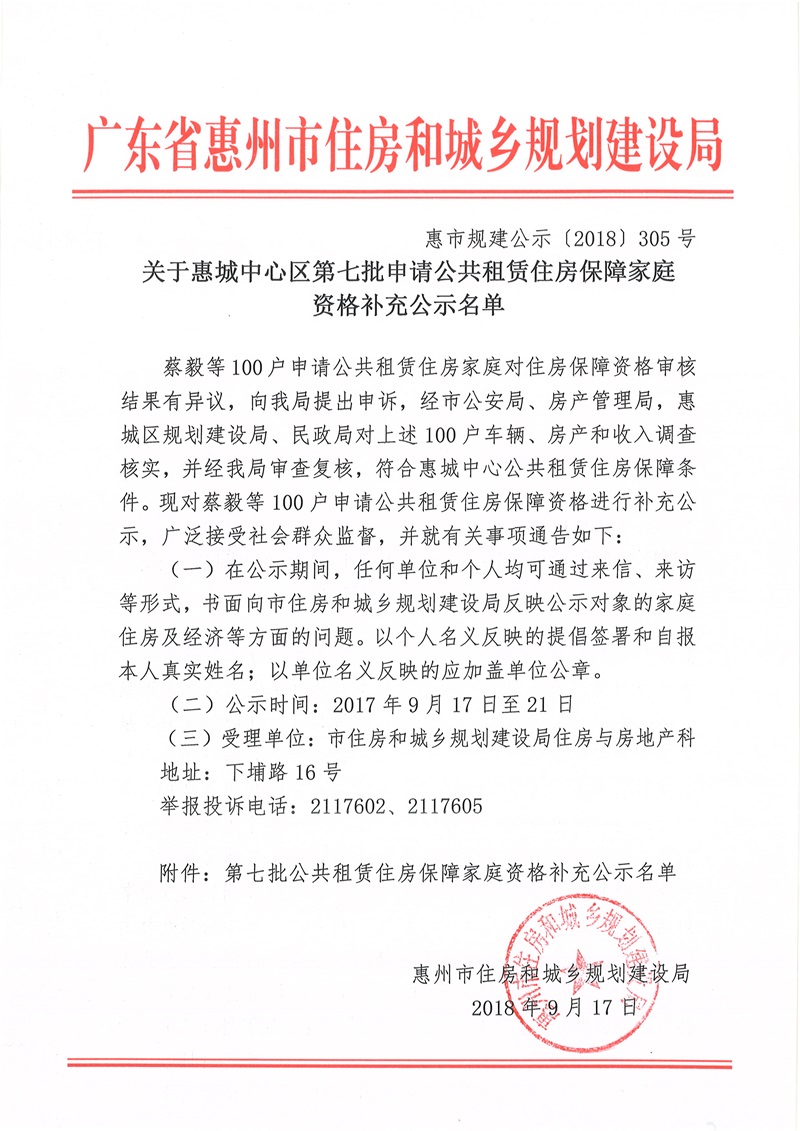 公共租賃住房保障家庭資格補(bǔ)充公示名單