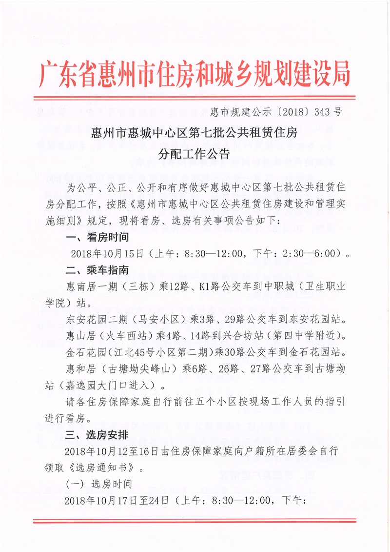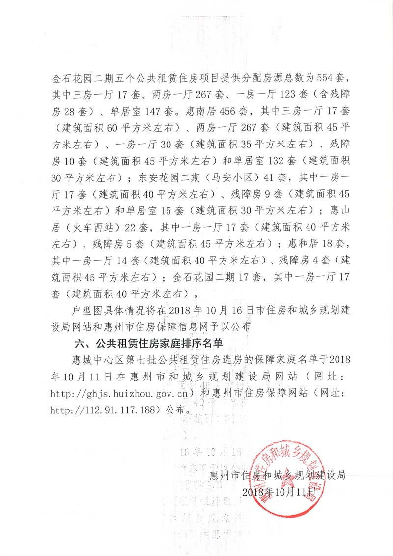 惠州市惠城中心區(qū)第七批公共租賃住房分配工作公告