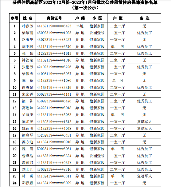附件:關于獲得仲愷高新區2022年12月份-2023年1月份批次公共租賃住房保障家庭資格名單的第一次公示.pdf