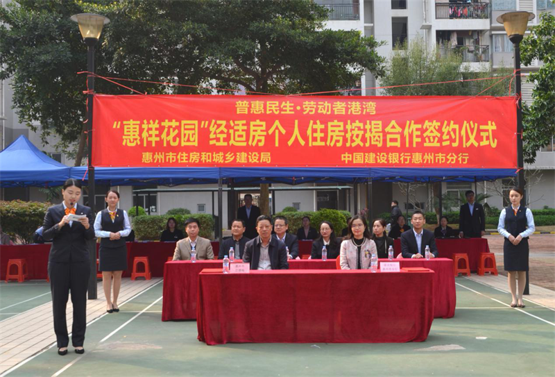 惠祥花園是我市保障性住房小區(qū),為方便小區(qū)經(jīng)濟(jì)適用房住戶辦理購(gòu)買(mǎi)經(jīng)濟(jì)適用房按揭手續(xù),2019年2月27日上午,我局與中國(guó)建設(shè)銀行惠州分行在惠祥花園聯(lián)合舉辦“普惠民生、勞動(dòng)者港灣暨惠祥花園經(jīng)適房個(gè)人住房按揭合作”簽約儀式。我局副局長(zhǎng)王摯平、中國(guó)建設(shè)銀行惠州分行行長(zhǎng)張建雅出席活動(dòng)。 簽約儀式上,王摯平指出,經(jīng)濟(jì)適用房建設(shè)作為我國(guó)住房保障性政策的重要組成部分,是政府解決中低收入家庭住房問(wèn)題,推進(jìn)城鎮(zhèn)住房制度改革,實(shí)施房地產(chǎn)業(yè)與國(guó)民經(jīng)濟(jì)協(xié)調(diào)發(fā)展的重大舉措。我局始終把人民對(duì)美好生活的向往作為奮斗目標(biāo),不斷強(qiáng)化責(zé)任擔(dān)當(dāng)和使命感,助力實(shí)現(xiàn)百姓住有所居的“安居夢(mèng)”。惠祥花園是繼“金石花園”、“東安花園”后第三個(gè)辦理經(jīng)濟(jì)適用房按揭手續(xù)的小區(qū)。活動(dòng)當(dāng)天,為惠祥花園120戶經(jīng)濟(jì)適用房保障家庭辦理了購(gòu)買(mǎi)經(jīng)濟(jì)適用房按揭手續(xù)。目前,三個(gè)小區(qū)已累計(jì)辦理592戶。