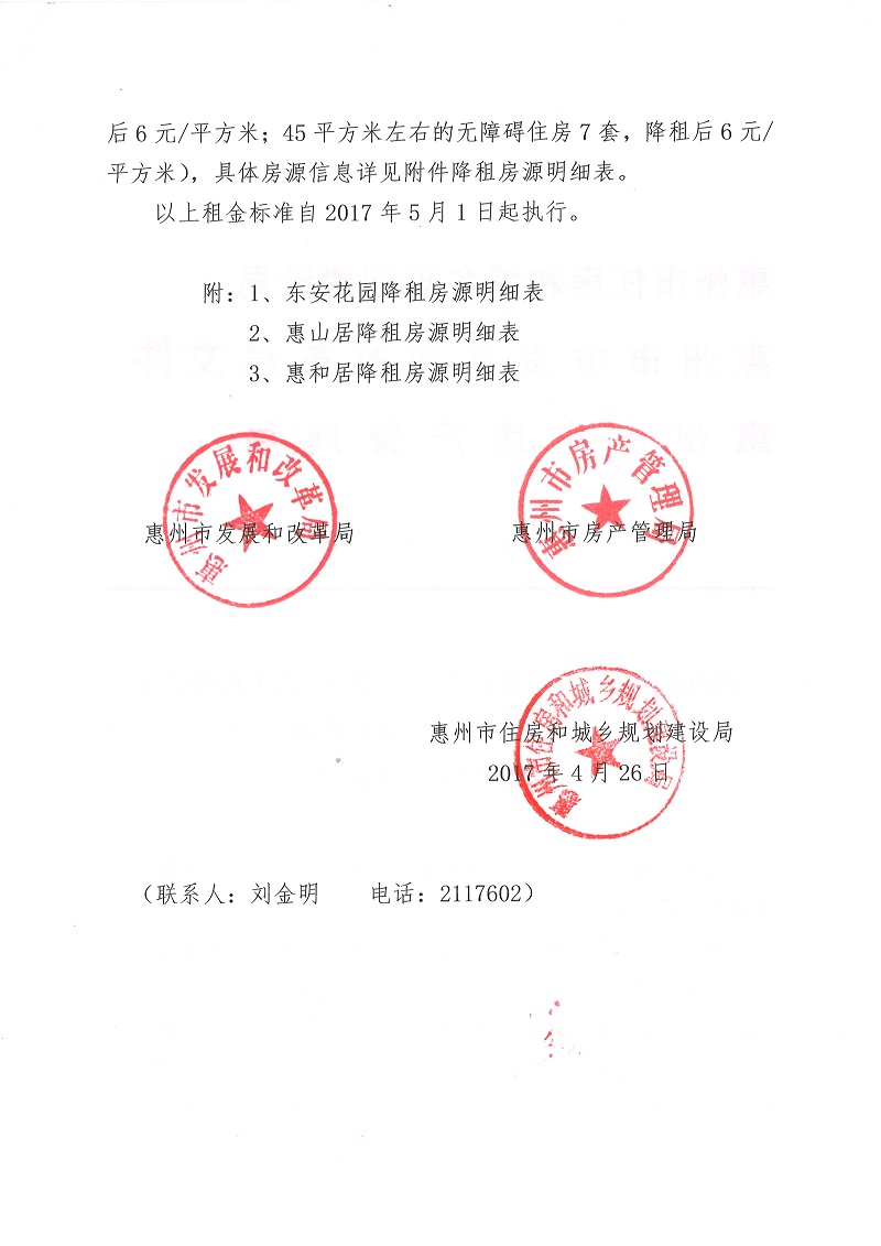 惠州市住房和城鄉(xiāng)規(guī)劃建設(shè)局、惠州市發(fā)展和改革局、惠州市房產(chǎn)管理局關(guān)于調(diào)整惠城中心部分公租房租金的通告