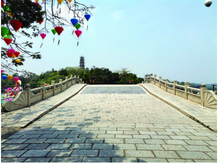 保寧橋位于博羅縣城西隅觀背村,又名觀前橋。該橋?yàn)槎资皹?兩孔之間置菱形分水尖,橋身為紅砂巖鋪筑,呈弧形,南北長31.4米,東西寬4.5米,高7米。橋拱呈半月形,外形顯得古樸、堅(jiān)固、壯觀。