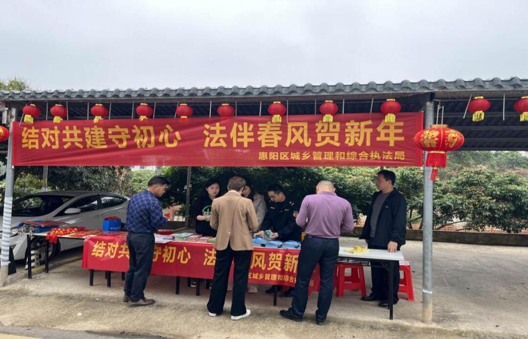 2月4日,惠陽區城管執法局以“結對共建守初心法伴春風賀新年”為主題,前往鎮隆鎮山頂村開展“千人百場”送法律服務進基層活動,圍繞城鄉管理和執法工作實際,開展普法宣傳。