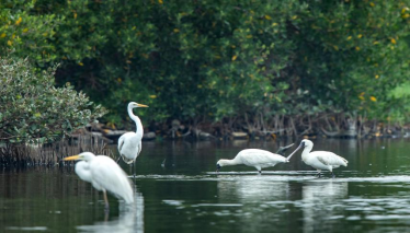 近年隨著沿海人工營造的紅樹林面積增加,人們環保意識提高,很多珍稀瀕危鳥類亮相惠州紅樹林,如在大亞灣發現的黑臉琵鷺、白琵鷺、黃嘴白鷺都是藍色海灣里的明星鳥。惠東鹽州島,人們常常可見在斜陽余暉下,成千上萬只白鷺結伴在紅樹林間翩躚、棲息,畫面極美。