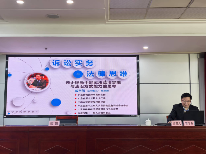 11月26日上午,舉行2024年度工信講堂暨第11次黨組理論學(xué)習(xí)中心組學(xué)習(xí)(擴(kuò)大)會(huì)議,傳達(dá)學(xué)習(xí)習(xí)近平法治思想。局黨組書記、局長廖巍出席會(huì)議,黨組成員、機(jī)關(guān)黨委書記鐘優(yōu)良主持并領(lǐng)學(xué),局干部職工共70余人參加。會(huì)議邀請了廣東偉倫律師事務(wù)所律師曾學(xué)智作《訴訟實(shí)務(wù)與法治思維——關(guān)于提高干部運(yùn)用法治思維和法治方式能力的思考》專題授課。曾學(xué)智律師從法治思維的時(shí)代要求、法治思維的直觀體現(xiàn)和訴訟實(shí)務(wù)案例三個(gè)部分進(jìn)行講解,兼具學(xué)術(shù)性、實(shí)用性、指導(dǎo)性,對全局領(lǐng)導(dǎo)干部進(jìn)一步學(xué)習(xí)領(lǐng)會(huì)習(xí)近平法治思想的核心內(nèi)容、重要意義,提高法治思維能力具有良好的指導(dǎo)作用。會(huì)議強(qiáng)調(diào),一是要提高政治站位,深入學(xué)習(xí)踐行習(xí)近平法治思想,自覺用習(xí)近平法治思想武裝頭腦、指導(dǎo)實(shí)踐、推動(dòng)工作;二是要強(qiáng)化程序意識,提升依法決策水平,強(qiáng)化合法性審查剛性約束;三是要堅(jiān)持嚴(yán)格規(guī)范、公正文明執(zhí)法,提升執(zhí)法規(guī)范化水平,建強(qiáng)工信系統(tǒng)行政執(zhí)法隊(duì)伍;四是要全面落實(shí)普法責(zé)任制,增強(qiáng)工信領(lǐng)域普法實(shí)效,深入推進(jìn)普法和政策宣貫進(jìn)園區(qū)、進(jìn)企業(yè)。(產(chǎn)業(yè)政策和規(guī)劃)