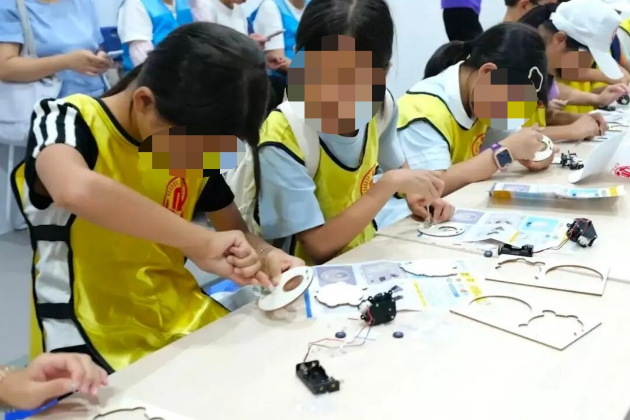 在惠州科技館,孩子們穿梭于“航空航天”“智能機器人”“力學奧秘”等主題展區(qū),通過VR設備體驗太空漫步、操作機械臂完成拼圖任務、觀察靜電球產(chǎn)生的奇幻現(xiàn)象。在與愛心科技企業(yè)合辦的“趣味科學公益實驗課堂”中,志愿講解員帶領(lǐng)孩子們動手制作簡易電路、觀察光學折射,激發(fā)他們對科學的好奇心與探索欲。“原來科學這么有趣!”10歲的困境兒童小智(化名)第一次觸摸機器人手臂時興奮地說道,一顆科學的種子,已悄然播撒心田。