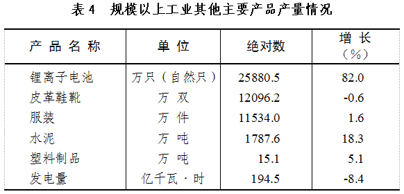 全年肉類總產量19.1萬噸,比上年下降0.2%。其中,豬肉產量14.2萬噸,增長2.0%;禽肉產量4.6萬噸,下降6.9%。全年水產品產量15.7萬噸,增長4.9%。其中,淡水產品產量7.7萬噸,增長4.0%;海水產品產量7.9萬噸,增長5.9%。