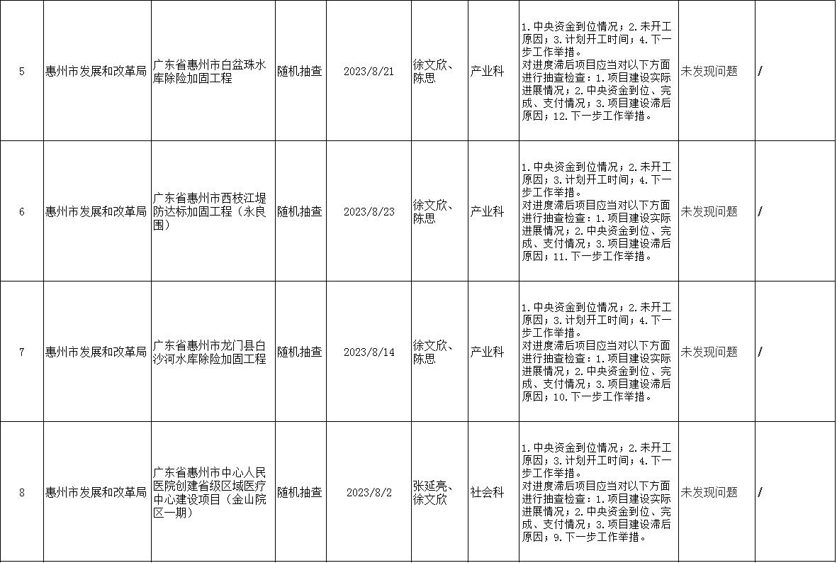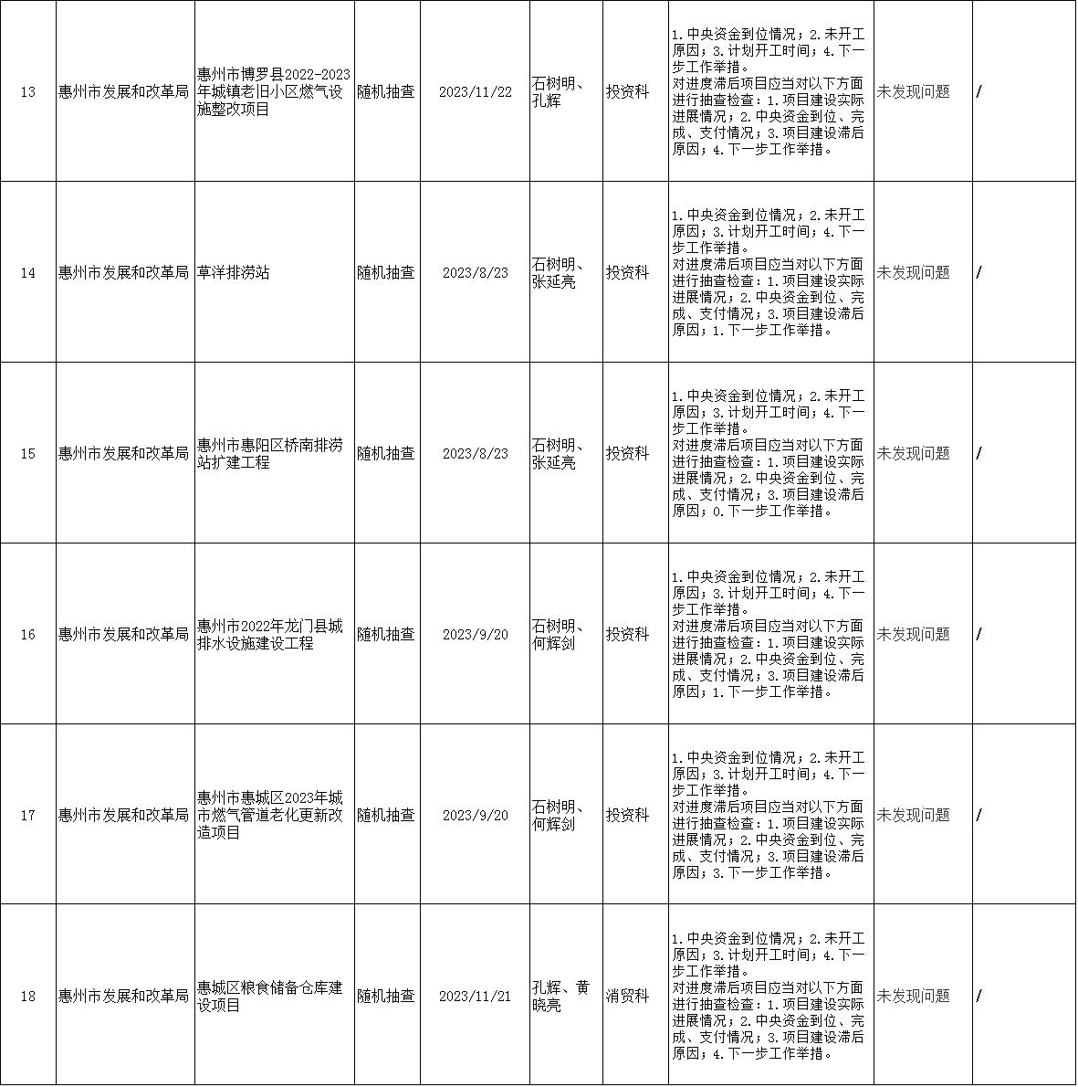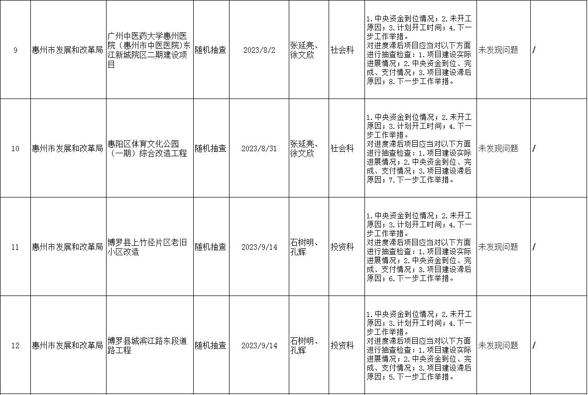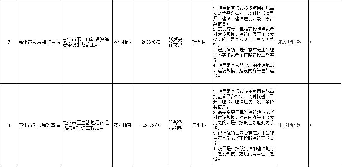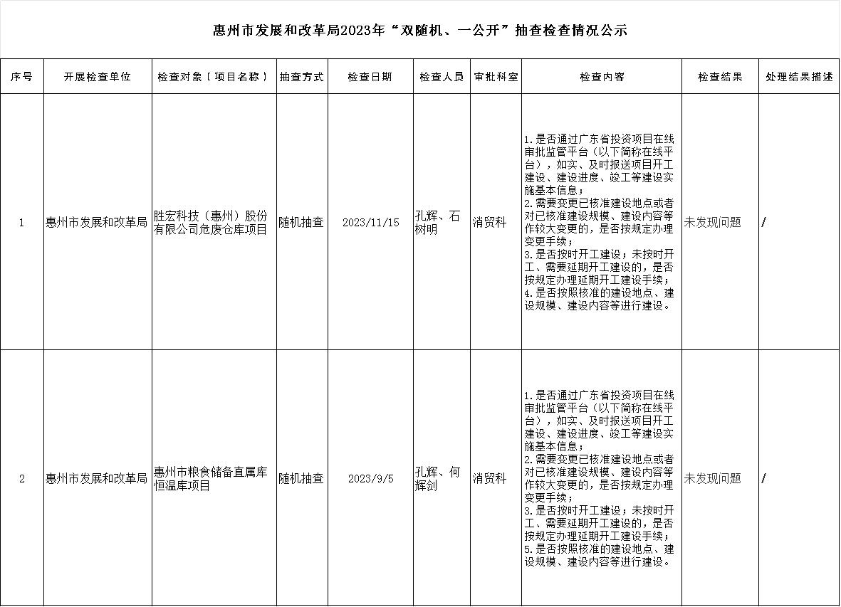 惠州市發展和改革局2023年“雙隨機、一公開”抽查檢查情況公示