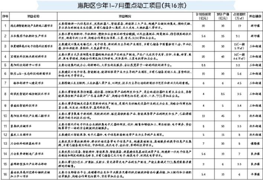 數據顯示,1~7月,惠陽全區產業項目動工61宗,計劃總投資340億元(其中億元以上產業項目動工44宗,計劃總投資290億元);全區產業項目竣工49宗,總投資162億元(其中億元以上產業項目竣工21宗,總投資140億元)。