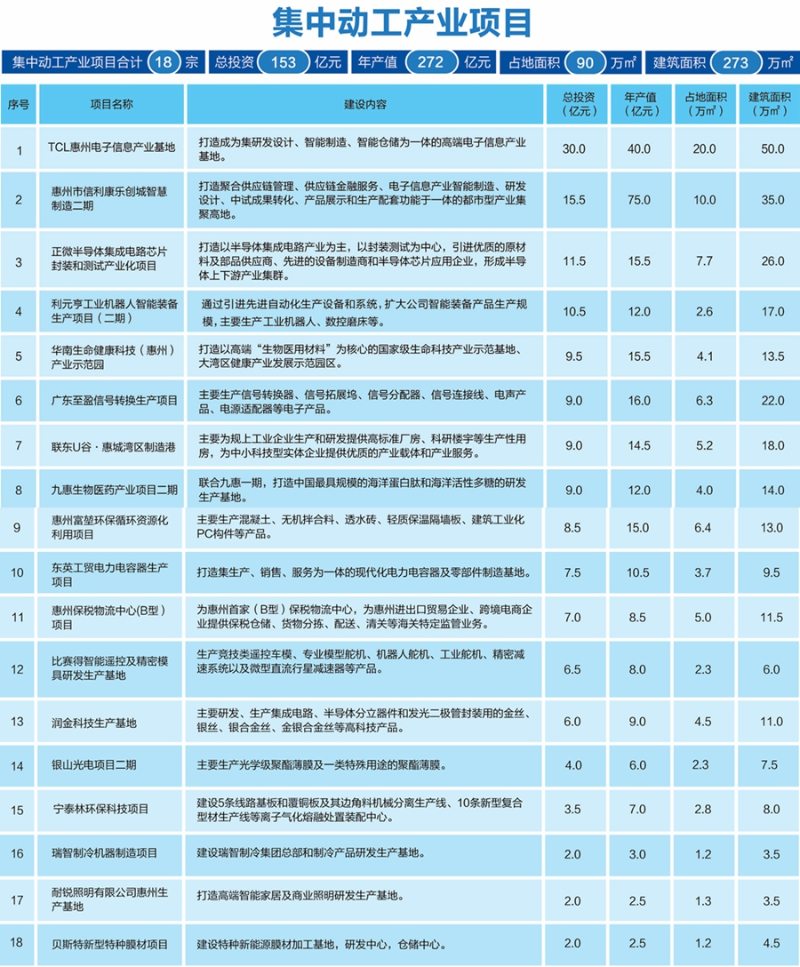 目前,東江灣產業園新入駐企業43家,投資總額257億元,預計年產值583億元。預計“十四五”期末,東江灣產業園總產值將超1000億元,成為支撐惠州高質量發展的重要力量。